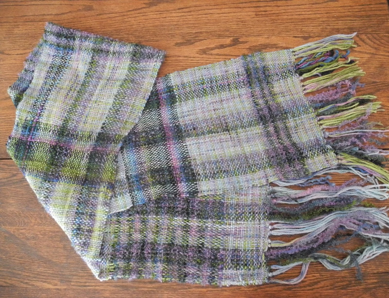 wool boucle, a sport weight yarn that had been mothproofed, and roving